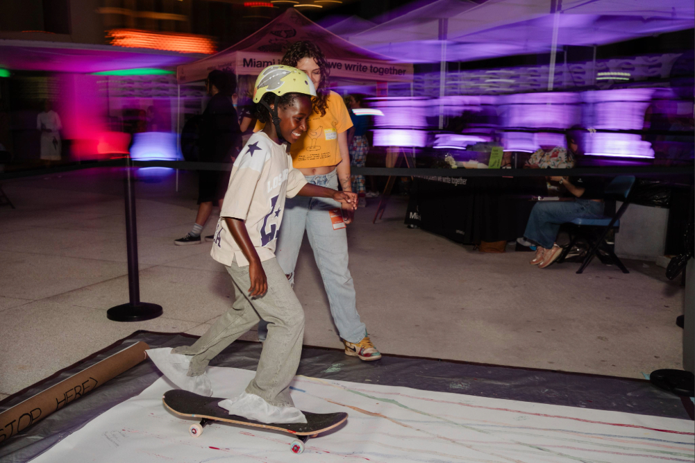 Tutifruti’s “Falling Frut” is a poetry & movement workshop focused on exploring calculated risk-taking, confronting fear, and reframing the learning process. Though this workshop takes place at a skatepark, the activity will be absent of skating and instead focus on the art of falling.