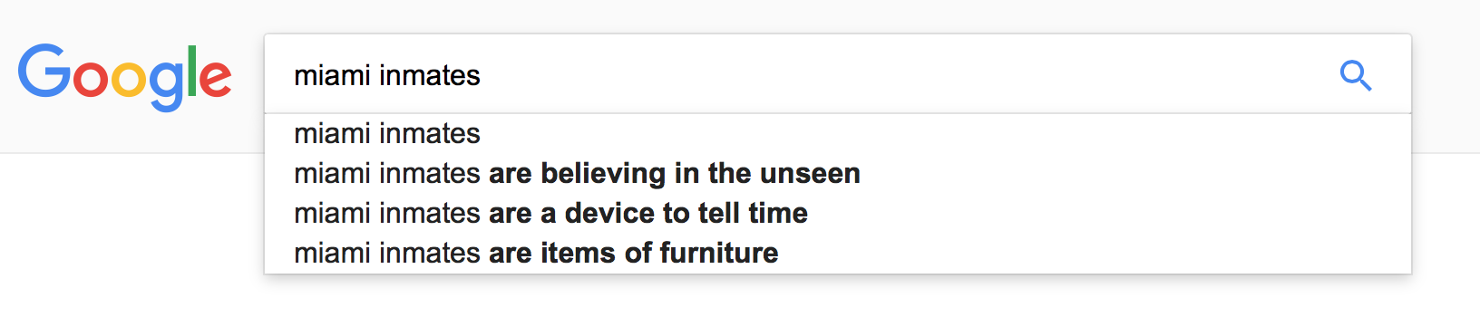In March 2017 more than 2,000 participants in South Florida will search for the following six poems, which will be published on the websites of 25 partner organizations. The action will create a search trend, resulting in a monopoly on local search predictions for “Miami inmate”: